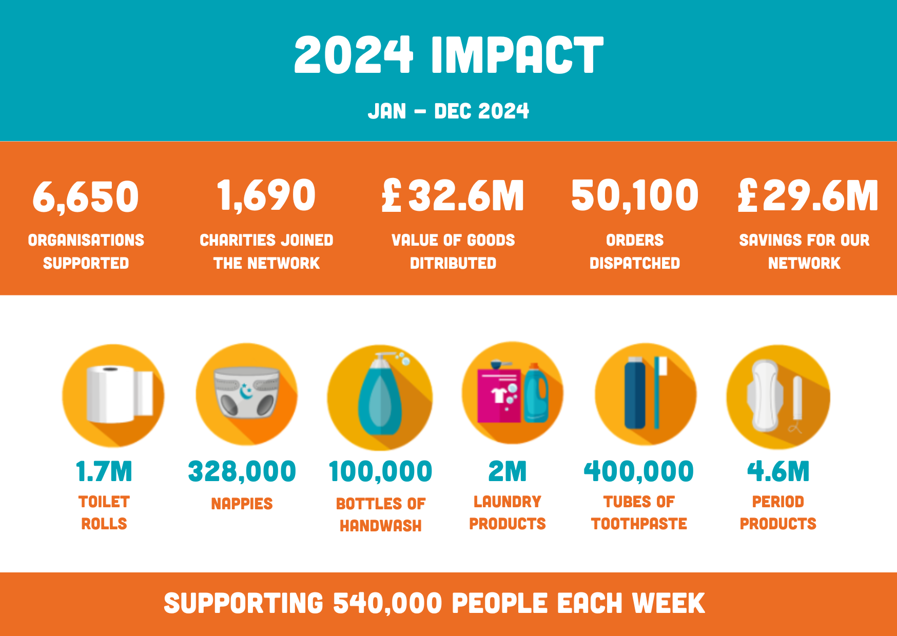 Our 2024 Impact Report reflects a landmark year for In Kind Direct, highlighting the growing scale and depth of our work to ensure everyone has access to life’s essentials. In the face of continued economic pressure and rising hygiene poverty, we supported 540,000 people each week through our network of over 6,650 charitable organisations, unlocking £29.6 million in savings for the sector.
